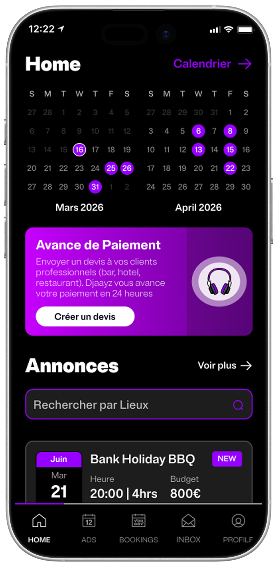 Tout ce dont vous avez besoin : trouver des bookings, gérer vos réservations, envoyer des factures et être payé. Le tout dans une seule appli, où que vous soyez.